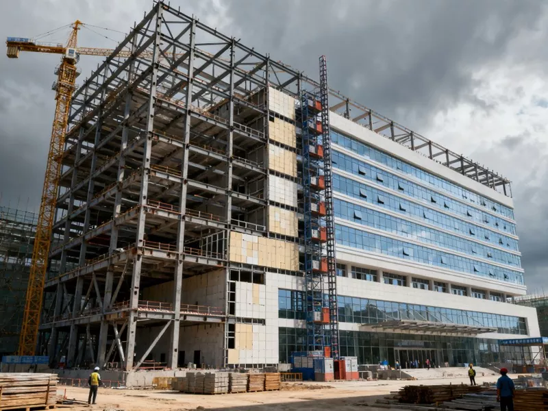 உயர்மட்ட ஆயத்த உலோக மருத்துவமனை கட்டிடங்கள் பொதுவாக 10 தளங்களுக்கு மேல் உள்ள மருத்துவமனை கட்டிடங்களைக் குறிக்கும். அவற்றின் சட்டங்கள் எஃகு கற்றைகள் மற்றும் எஃகு நெடுவரிசைகளால் ஆனவை, அவை போல்ட் அல்லது வெல்டிங் மூலம் இணைக்கப்படுகின்றன. உயரமான உலோக மருத்துவமனை கட்டிடங்களின் முக்கிய பொருள் எஃகு ஆகும். எஃகு கட்டமைப்பு கட்டிடங்கள் உறுதியான மற்றும் நிலையான, விரைவான நிறுவல், ஆற்றல் பாதுகாப்பு மற்றும் சுற்றுச்சூழல் பாதுகாப்பு போன்ற பண்புகளைக் கொண்டுள்ளன. மருத்துவமனையின் முக்கிய சட்டகம் மற்றும் பிற கூறுகள் தொழிற்சாலையில் தயாரிக்கப்பட்டு செயலாக்கப்படுகின்றன. செயலாக்கத்திற்குப் பிறகு, அவை நிறுவலுக்காக கட்டுமான தளத்திற்கு கொண்டு செல்லப்படலாம். பல்வேறு பகுதிகள் போல்ட்களுடன் இணைக்கப்பட்டுள்ளன, மேலும் சில முனைகள் தளத்தில் பற்றவைக்கப்பட வேண்டும். இந்த மருத்துவமனை கட்டிடம் பொதுவாக பெரிய பொது மருத்துவமனைகள், உள்நோயாளிகள் கட்டிடங்கள், ஆராய்ச்சி கட்டிடங்கள் போன்றவற்றில் பயன்படுத்தப்படுகிறது.