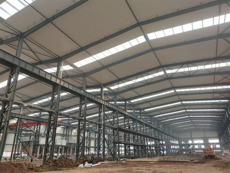 முன் தயாரிக்கப்பட்ட எஃகு கூறுகள் கட்டுமான தளத்திற்கு வழங்கப்படுகின்றன மற்றும் கிரேன்கள் மற்றும் பிற கனரக உபகரணங்களைப் பயன்படுத்தி சேகரிக்கப்படுகின்றன. நிறுவல் செயல்முறை பொதுவாக நெடுவரிசைகளுடன் தொடங்குகிறது, அவை அமைக்கப்பட்டு அடித்தளத்தில் நங்கூரமிடப்படுகின்றன. பின்னர் பத்திகளை இணைக்க பீம்கள் நிறுவப்பட்டு, கிடங்கின் சட்டத்தை உருவாக்குகின்றன. கூரை டிரஸ்கள் அமைக்கப்பட்டு சட்டத்திற்குப் பாதுகாக்கப்படுகின்றன, கூரை அமைப்பை ஆதரிக்கின்றன.