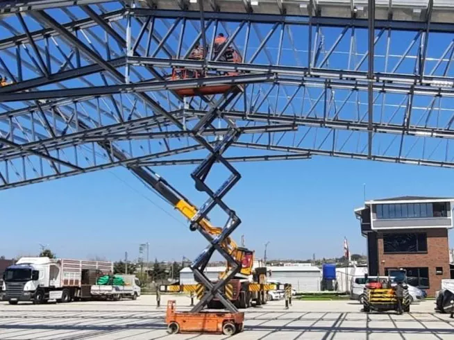 எஃகு சட்டகம் முடிந்ததும், கூரை அமைப்பு நிறுவப்பட்டது, பொதுவாக தனிமைப்படுத்தப்பட்ட உலோக பேனல்கள் அல்லது ஒற்றை அடுக்கு சவ்வு பொருட்கள் கொண்டிருக்கும். வெளிப்புற சுவர்கள், வடிவமைப்பில் சேர்க்கப்பட்டால், உலோக பேனல்கள், செங்கல் அல்லது பிற உறைப்பூச்சு பொருட்களைப் பயன்படுத்தி நிறுவப்பட்டுள்ளன.