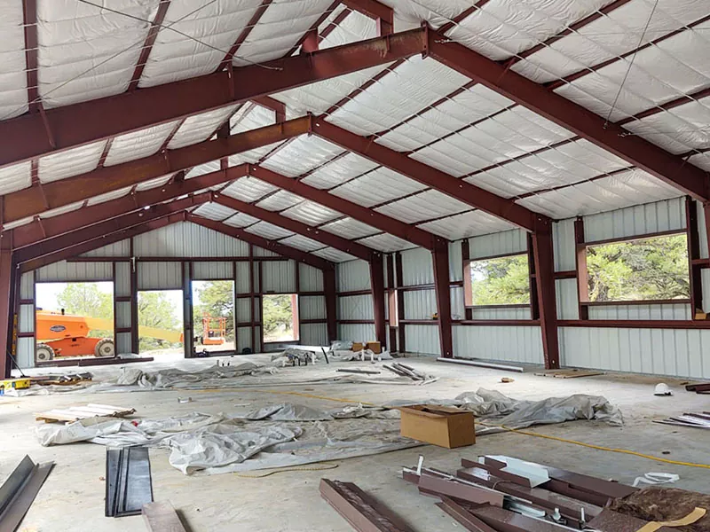 எஃகு அமைப்பு நிறுவல்:முன்னரே தயாரிக்கப்பட்ட கூறுகள் கட்டுமான தளத்திற்கு வழங்கப்பட்டு கிரேன்கள் மற்றும் பிற கனரக உபகரணங்களைப் பயன்படுத்தி கூடியிருக்கின்றன. செயல்முறை பொதுவாக நெடுவரிசைகளை அமைத்து நங்கூரமிடுவதன் மூலம் தொடங்குகிறது, அதைத் தொடர்ந்து விட்டங்களை நிறுவுவதன் மூலம் கிடங்கின் சட்டகத்தை உருவாக்குகிறது. கூரை டிரஸ்கள் பின்னர் அமைக்கப்பட்டு பாதுகாக்கப்படுகின்றன, கூரை அமைப்பை ஆதரிக்கின்றன.