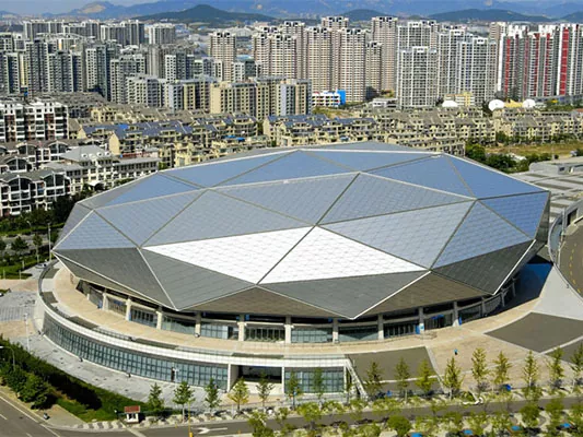 நெகிழ்வுத்தன்மை: எஃகு கட்டமைப்புகள் அதிக நெகிழ்வான வடிவமைப்பு விருப்பங்களை அனுமதிக்கின்றன, இது அரங்கங்களை தனித்துவமான மற்றும் புதுமையான வடிவங்களைக் கொண்டிருக்க உதவுகிறது.