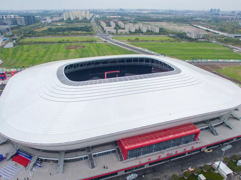 அரங்கத்தின் கட்டமைப்பு வடிவமைப்பு முழு இடத்தையும் ஆதரிக்கும் எஃகு கட்டமைப்பைச் சுற்றி வருகிறது. எஃகு விட்டங்கள் மற்றும் நெடுவரிசைகள் ஒரு கடினமான மற்றும் நிலையான கட்டமைப்பை உருவாக்க பயன்படுத்தப்படுகின்றன, இது தீவிர வானிலை மற்றும் ஆயிரக்கணக்கான பார்வையாளர்களின் எடையைத் தாங்கும். எஃகு கட்டமைப்பானது திறந்த மற்றும் காற்றோட்டமான இடங்களை உருவாக்க அனுமதிக்கிறது, நல்ல காற்றோட்டம் மற்றும் இயற்கை ஒளி ஊடுருவலை உறுதி செய்கிறது.
